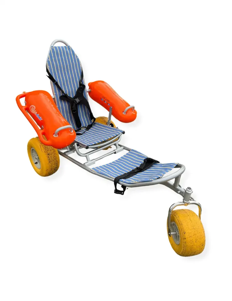 - Floating (water-entry) wheelchairs are designed to roll into the water and float, often equipped with buoyant armrests. They allow users to safely enter the water — usually with assistance and safety gear.