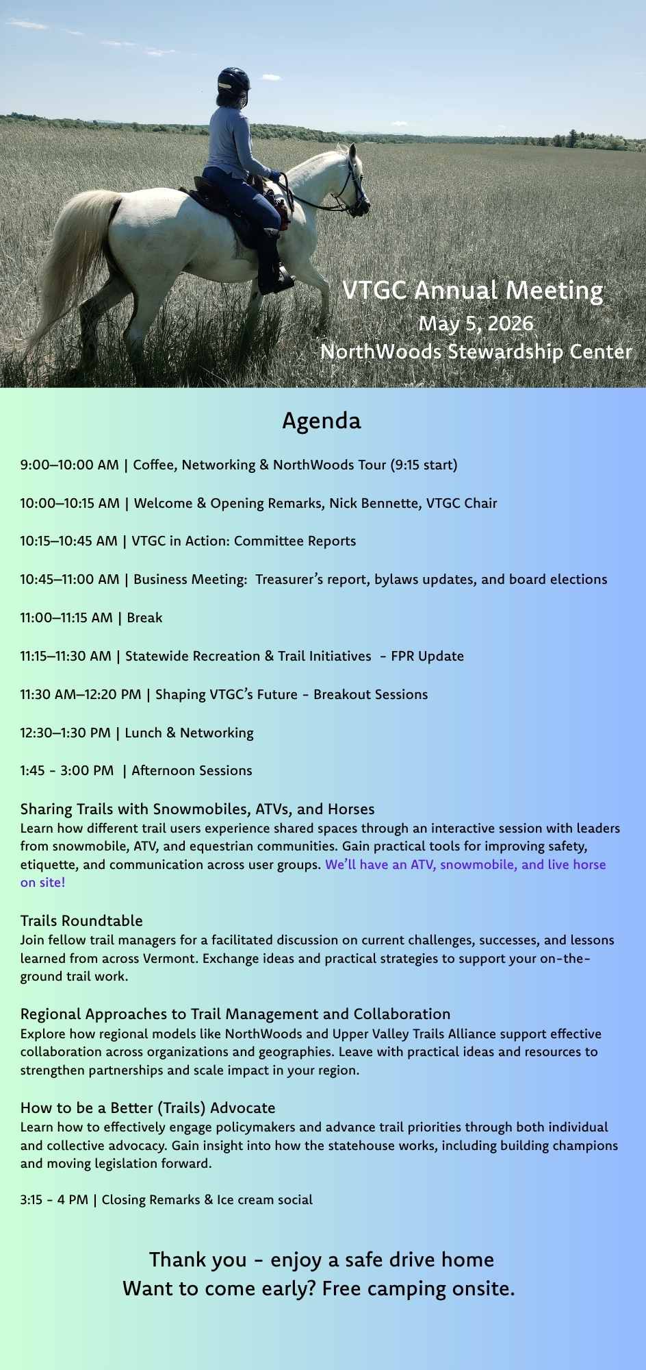 Join trail managers and advocates from around the state for our Annual Meeting May 5 at Northwoods Stewardship Center in East Charleston. Open to all trail managers, volunteer or professional, […] |